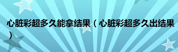 1、心脏彩色多普勒超声需要根据病变的复杂程度来决定何时得到结果。