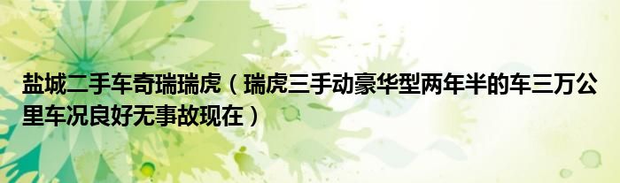 1,瑞虎三手动豪华型两年半的车三万公里车况良好无事故现在:瑞虎三手动豪华型二手车如果没有发生过大的事故,手续没有问题,车子没有泡过水的情况下应该在新车包牌的价格基础上打个八五折左右,具体看实际车况。