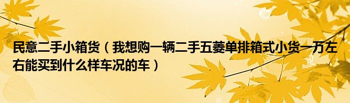 大家好,小常来为大家解答以下问题,对于民意二手小箱货,我想购一辆二手五菱单排箱式小货一万左右能买到什么样车况的车很多人还不知道,今天让我们一起来看看吧!