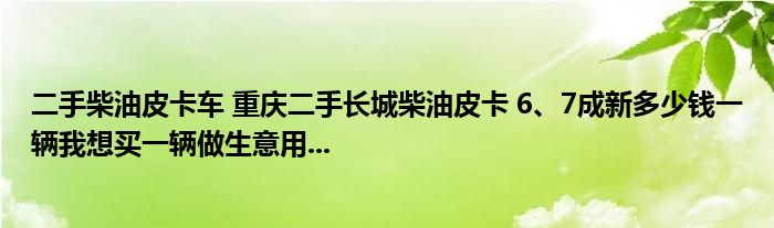 大家好,小常来为大家解答以下问题,对于二手柴油皮卡车,重庆二手长城柴油皮卡,6、7成新多少钱一辆我想买一辆做生意用...很多人还不知道,今天让我们一起来看看吧!