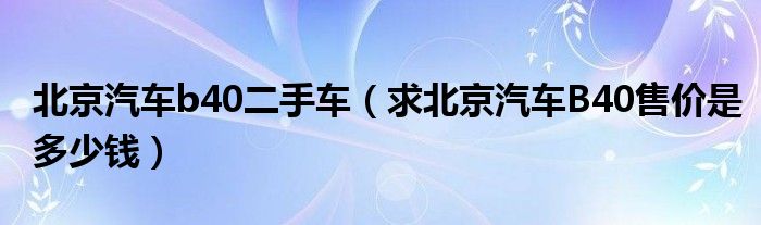 大家好,小常来为大家解答以下问题,对于北京汽车b40二手车,求北京汽车B40售价是多少钱很多人还不知道,今天让我们一起来看看吧!