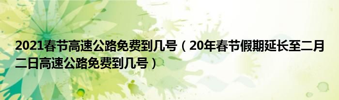 1,20年春节假期延长至二月二日高速公路免费到几号: 20年春节假期延长至2月2日,高速公路免费到几号应该到七号