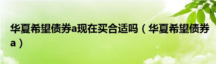 华夏希望债券a现在买合适吗(华夏希望债券a)