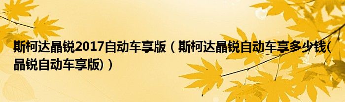 大家好,小常来为大家解答以下问题,对于斯柯达晶锐2017自动车享版,斯柯达晶锐自动车享多少钱(晶锐自动车享版)很多人还不知道,今天让我们一起来看看吧!