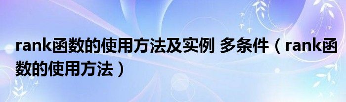 大家好,小晋来为大家解答以下问题,关于rank函数的使用方法及实例 多条件,rank函数的使用方法很多人还不知道,今天让我们一起来看看吧!