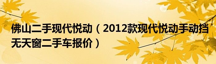 1,2012款现代悦动手动挡无天窗二手车报价 :2012款现代悦动手动挡无天窗的二手车如果没有发生过大的事故,手续没有问题,车子没有泡过水的情况下应该在四万五左右,具体看实际车况。