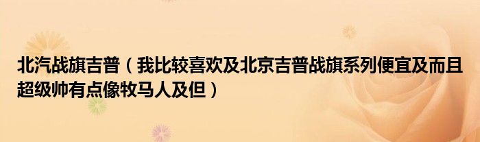大家好,小常来为大家解答以下问题,对于北汽战旗吉普,我比较喜欢及北京吉普战旗系列便宜及而且超级帅有点像牧马人及但很多人还不知道,今天让我们一起来看看吧!