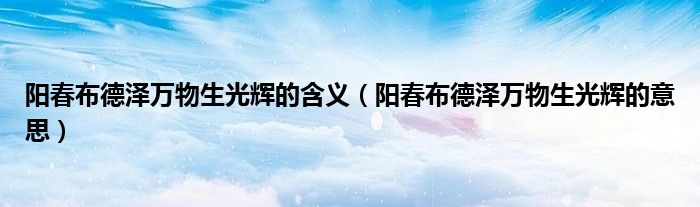 关于阳春布德泽万物生光辉的含义,阳春布德泽万物生光辉的意思这个很多人还不知道,今天菲菲来为大家解答以上的问题,现在让我们一起来看看吧!