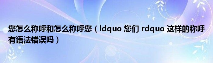 关于您怎么称呼和怎么称呼您,ldquo 您们 rdquo 这样的称呼有语法错误吗这个很多人还不知道,今天菲菲来为大家解答以上的问题,现在让我们一起来看看吧!