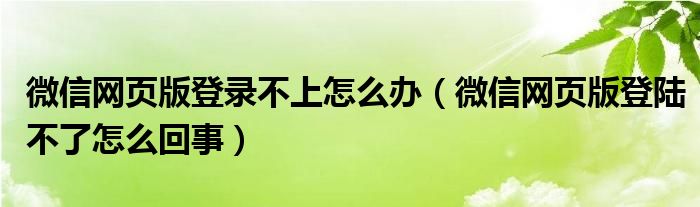 关于微信网页版登录不上怎么办,微信网页版登陆不了怎么回事这个很多人还不知道,今天菲菲来为大家解答以上的问题,现在让我们一起来看看吧!