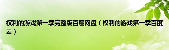关于权利的游戏第一季完整版百度网盘,权利的游戏第一季百度云这个很多人还不知道,今天菲菲来为大家解答以上的问题,现在让我们一起来看看吧!