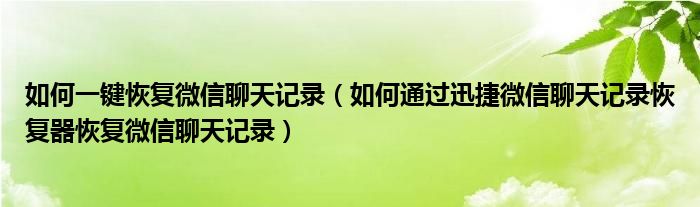 关于如何一键恢复微信聊天记录,如何通过迅捷微信聊天记录恢复器恢复微信聊天记录这个很多人还不知道,今天菲菲来为大家解答以上的问题,现在让我们一起来看看吧!