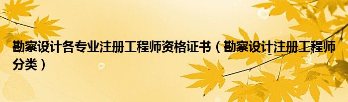 关于勘察设计各专业注册工程师资格证书,勘察设计注册工程师分类这个很多人还不知道,今天菲菲来为大家解答以上的问题,现在让我们一起来看看吧!