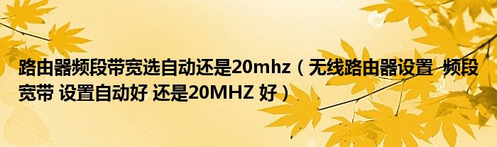 关于路由器频段带宽选自动还是20mhz,无线路由器设置 频段宽带 设置自动好 还是20MHZ 好这个很多人还不知道,今天菲菲来为大家解答以上的问题,现在让我们一起来看看吧!