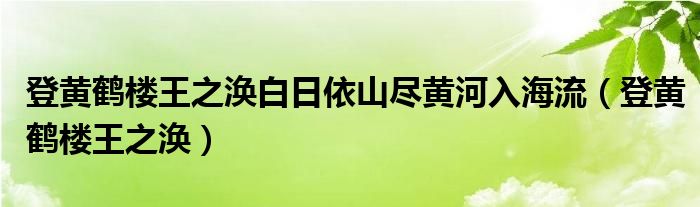 关于登黄鹤楼王之涣白日依山尽黄河入海流,登黄鹤楼王之涣这个很多人还不知道,今天菲菲来为大家解答以上的问题,现在让我们一起来看看吧!