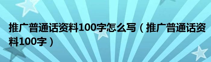 关于推广普通话资料100字怎么写,推广普通话资料100字这个很多人还不知道,今天菲菲来为大家解答以上的问题,现在让我们一起来看看吧!