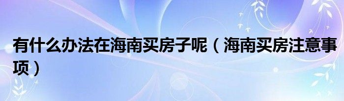 关于有什么办法在海南买房子呢,海南买房注意事项这个很多人还不知道,今天菲菲来为大家解答以上的问题,现在让我们一起来看看吧!