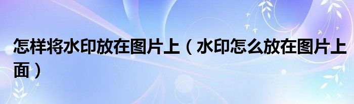 关于怎样将水印放在图片上,水印怎么放在图片上面这个很多人还不知道,今天菲菲来为大家解答以上的问题,现在让我们一起来看看吧!