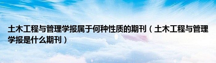 关于土木工程与管理学报属于何种性质的期刊,土木工程与管理学报是什么期刊这个很多人还不知道,今天菲菲来为大家解答以上的问题,现在让我们一起来看看吧!