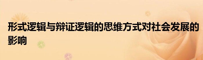 关于形式逻辑与辩证逻辑的思维方式对社会发展的影响这个很多人还不知道,今天菲菲来为大家解答以上的问题,现在让我们一起来看看吧!