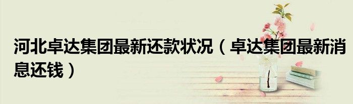 关于河北卓达集团最新还款状况,卓达集团最新消息还钱这个很多人还不知道,今天菲菲来为大家解答以上的问题,现在让我们一起来看看吧!