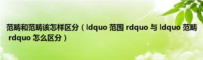 关于范畴和范畴该怎样区分,ldquo 范围 rdquo 与 ldquo 范畴 rdquo 怎么区分这个很多人还不知道,今天菲菲来为大家解答以上的问题,现在让我们一起来看看吧!