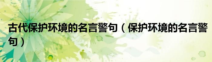 关于古代保护环境的名言警句,保护环境的名言警句这个很多人还不知道,今天菲菲来为大家解答以上的问题,现在让我们一起来看看吧!