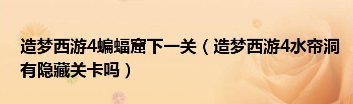 造梦西游4蝙蝠窟下一关(造梦西游4水帘洞有隐藏关卡吗)