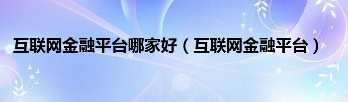 关于互联网金融平台哪家好,互联网金融平台这个很多人还不知道,今天菲菲来为大家解答以上的问题,现在让我们一起来看看吧!