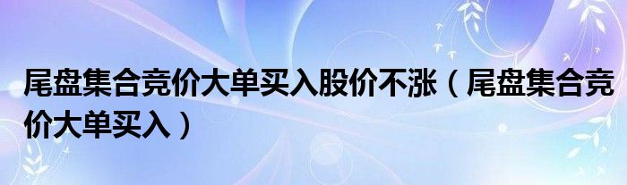 关于尾盘集合竞价大单买入股价不涨,尾盘集合竞价大单买入这个很多人还不知道,今天菲菲来为大家解答以上的问题,现在让我们一起来看看吧!