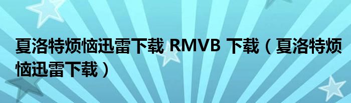 关于夏洛特烦恼迅雷下载 RMVB 下载,夏洛特烦恼迅雷下载这个很多人还不知道,今天菲菲来为大家解答以上的问题,现在让我们一起来看看吧!