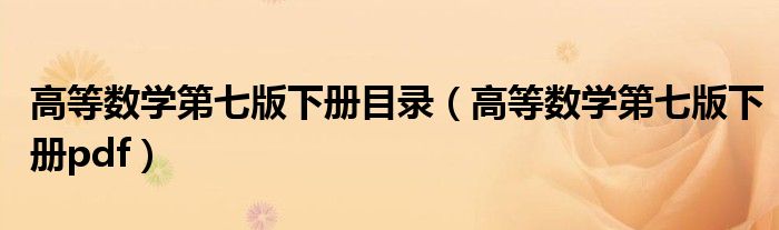 关于高等数学第七版下册目录,高等数学第七版下册pdf这个很多人还不知道,今天菲菲来为大家解答以上的问题,现在让我们一起来看看吧!