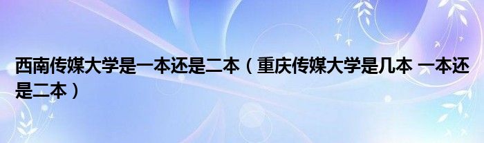 关于西南传媒大学是一本还是二本,重庆传媒大学是几本 一本还是二本这个很多人还不知道,今天菲菲来为大家解答以上的问题,现在让我们一起来看看吧!