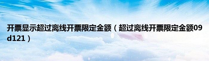 关于开票显示超过离线开票限定金额,超过离线开票限定金额09d121这个很多人还不知道,今天菲菲来为大家解答以上的问题,现在让我们一起来看看吧!