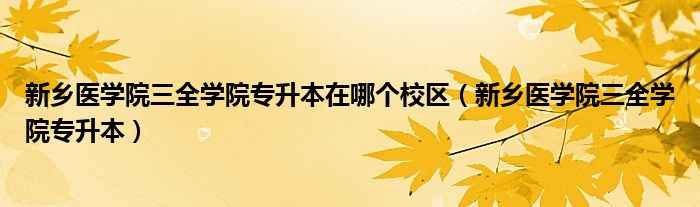 关于新乡医学院三全学院专升本在哪个校区,新乡医学院三全学院专升本这个很多人还不知道,今天菲菲来为大家解答以上的问题,现在让我们一起来看看吧!