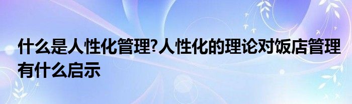 关于什么是人性化管理?人性化的理论对饭店管理有什么启示这个很多人还不知道,今天菲菲来为大家解答以上的问题,现在让我们一起来看看吧!