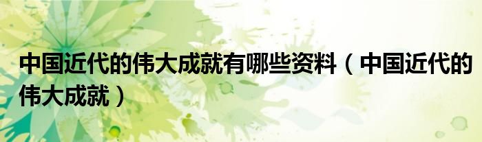 关于中国近代的伟大成就有哪些资料,中国近代的伟大成就这个很多人还不知道,今天菲菲来为大家解答以上的问题,现在让我们一起来看看吧!