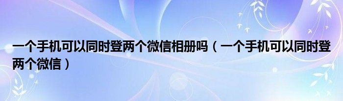 关于一个手机可以同时登两个微信相册吗,一个手机可以同时登两个微信这个很多人还不知道,今天菲菲来为大家解答以上的问题,现在让我们一起来看看吧!