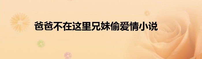 关于爸爸不在这里兄妹偷爱情小说这个很多人还不知道,今天菲菲来为大家解答以上的问题,现在让我们一起来看看吧!