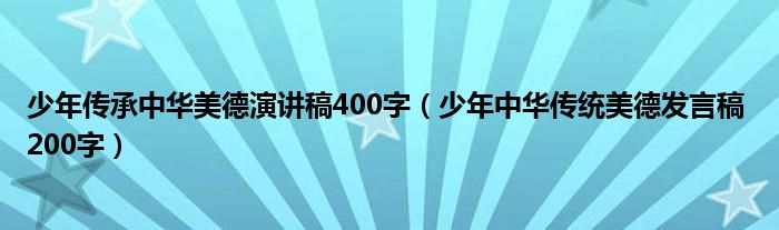 关于少年传承中华美德演讲稿400字,少年中华传统美德发言稿 200字这个很多人还不知道,今天菲菲来为大家解答以上的问题,现在让我们一起来看看吧!