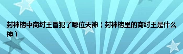 关于封神榜中商纣王冒犯了哪位天神,封神榜里的商纣王是什么神这个很多人还不知道,今天菲菲来为大家解答以上的问题,现在让我们一起来看看吧!