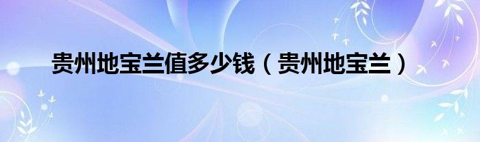 关于贵州地宝兰值多少钱,贵州地宝兰这个很多人还不知道,今天菲菲来为大家解答以上的问题,现在让我们一起来看看吧!
