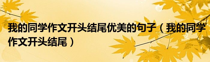 关于我的同学作文开头结尾优美的句子,我的同学作文开头结尾这个很多人还不知道,今天菲菲来为大家解答以上的问题,现在让我们一起来看看吧!