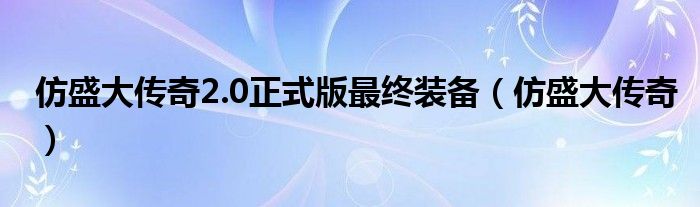 关于仿盛大传奇2.0正式版最终装备,仿盛大传奇这个很多人还不知道,今天菲菲来为大家解答以上的问题,现在让我们一起来看看吧!