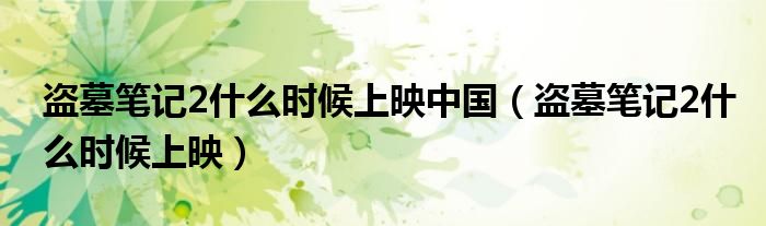 关于盗墓笔记2什么时候上映中国,盗墓笔记2什么时候上映这个很多人还不知道,今天菲菲来为大家解答以上的问题,现在让我们一起来看看吧!