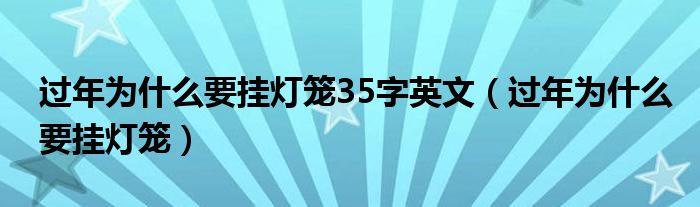 关于过年为什么要挂灯笼35字英文,过年为什么要挂灯笼这个很多人还不知道,今天菲菲来为大家解答以上的问题,现在让我们一起来看看吧!