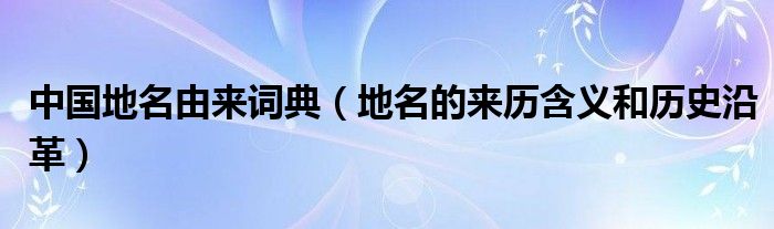关于中国地名由来词典,地名的来历含义和历史沿革这个很多人还不知道,今天菲菲来为大家解答以上的问题,现在让我们一起来看看吧!