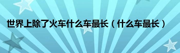 关于世界上除了火车什么车最长,什么车最长这个很多人还不知道,今天菲菲来为大家解答以上的问题,现在让我们一起来看看吧!