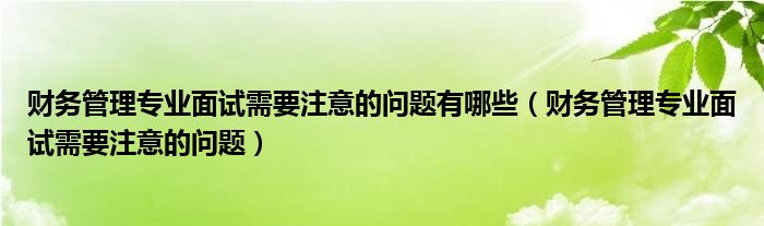 关于财务管理专业面试需要注意的问题有哪些,财务管理专业面试需要注意的问题这个很多人还不知道,今天菲菲来为大家解答以上的问题,现在让我们一起来看看吧!