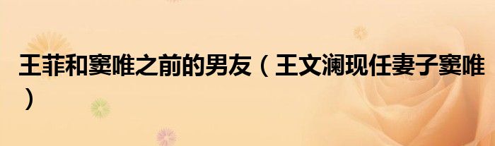 关于王菲和窦唯之前的男友,王文澜现任妻子窦唯这个很多人还不知道,今天菲菲来为大家解答以上的问题,现在让我们一起来看看吧!